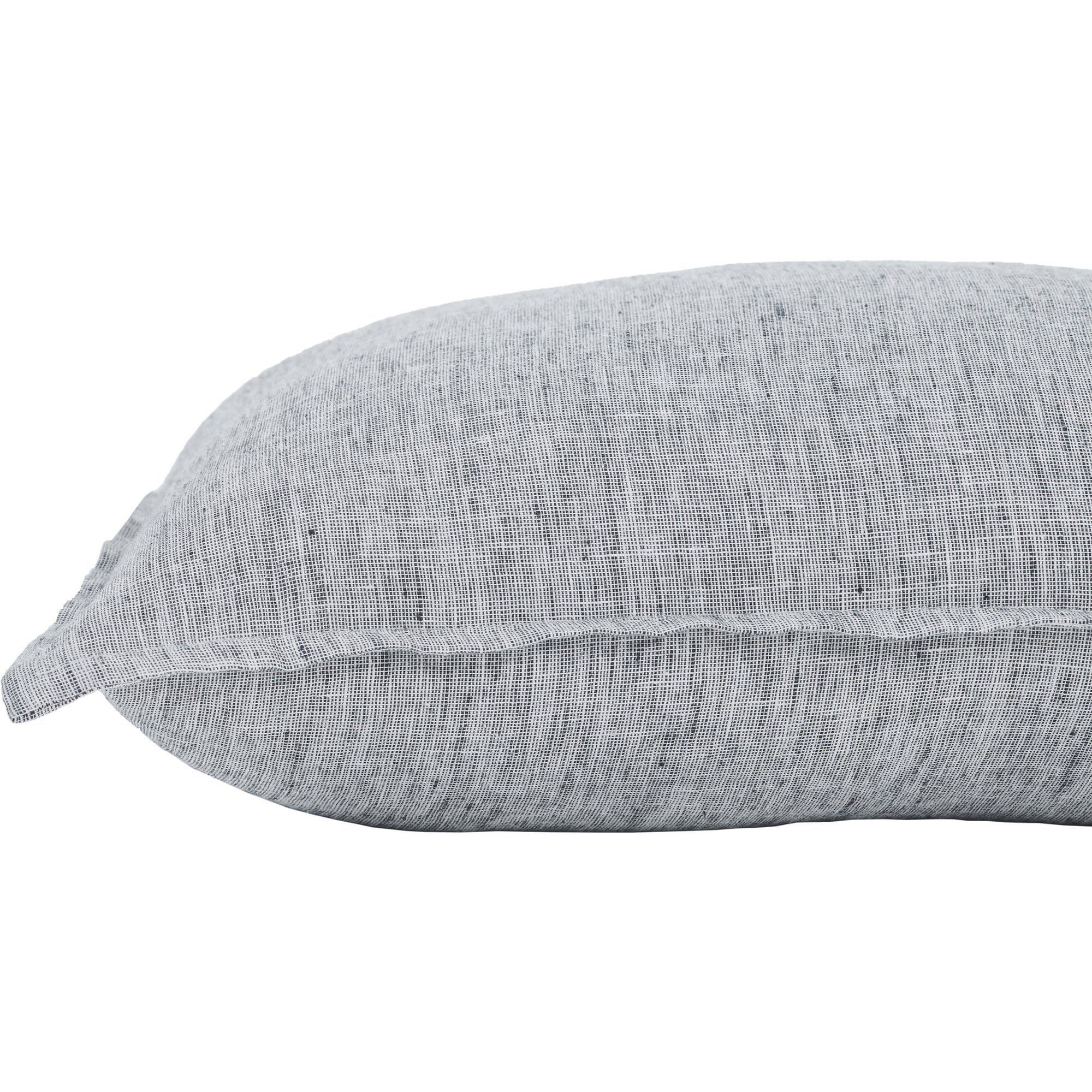 The inherent elegance of linen is felt in with this pillow design. Featuring a subtle blend of white and black along its exterior and soft feather-down filling inside, it can be arranged solo or in sequence for added comfort. At 20 by 20 inches, it holds grandeur without becoming grandiose.