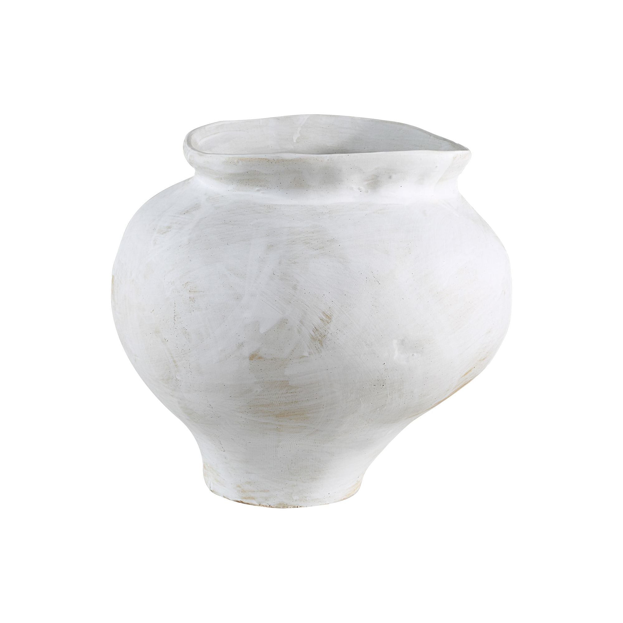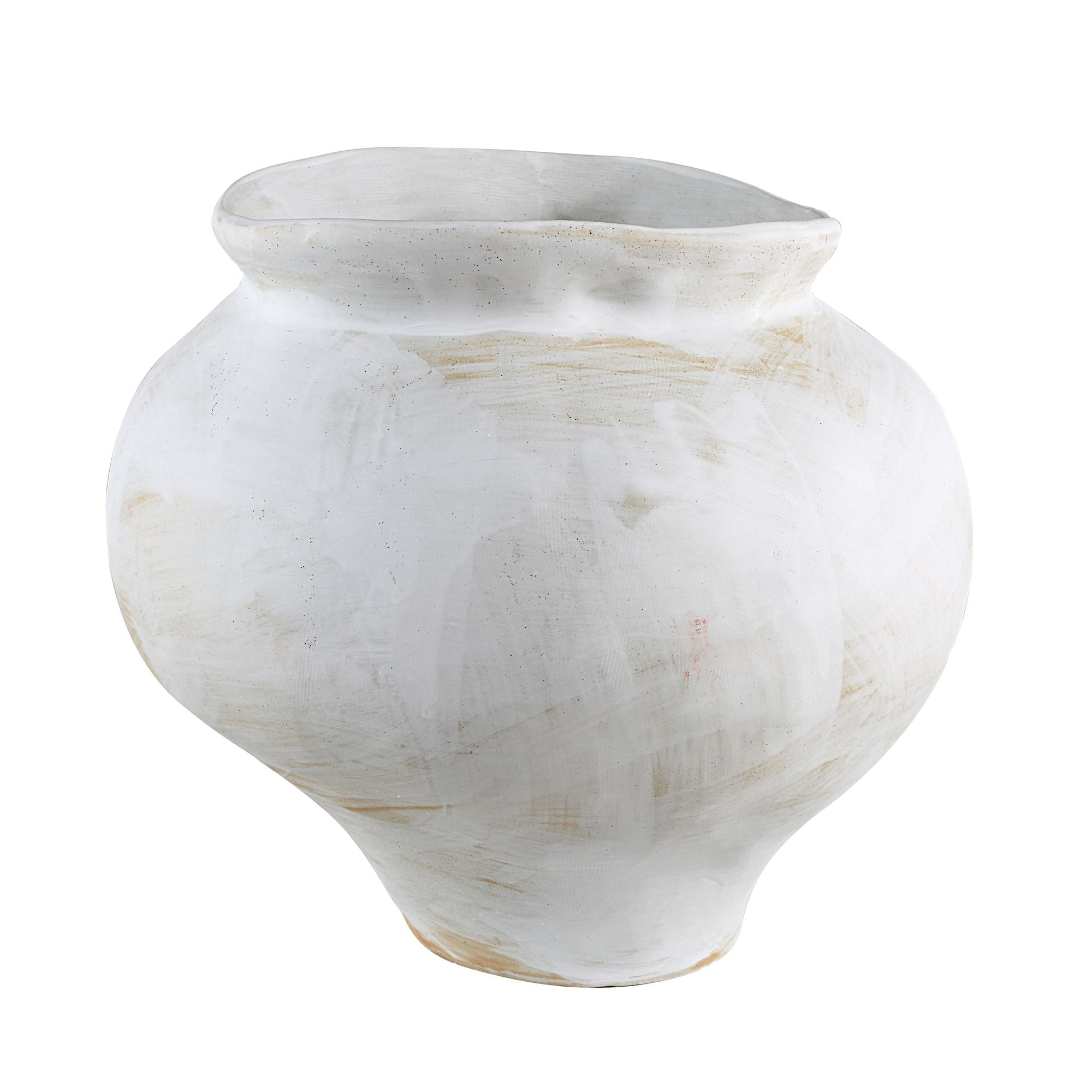 Embrace an artisanal vibe in any interior with the fresh-off-the-wheel look of this stylish 8.85-inch diameter vase. Created from terracotta with a hand thrown feel and a unique antique white painted finish, this vase will elevate any contemporary or transitional space. And because it’s watertight, it can hold fresh blooms to fill the room with botanical beauty.