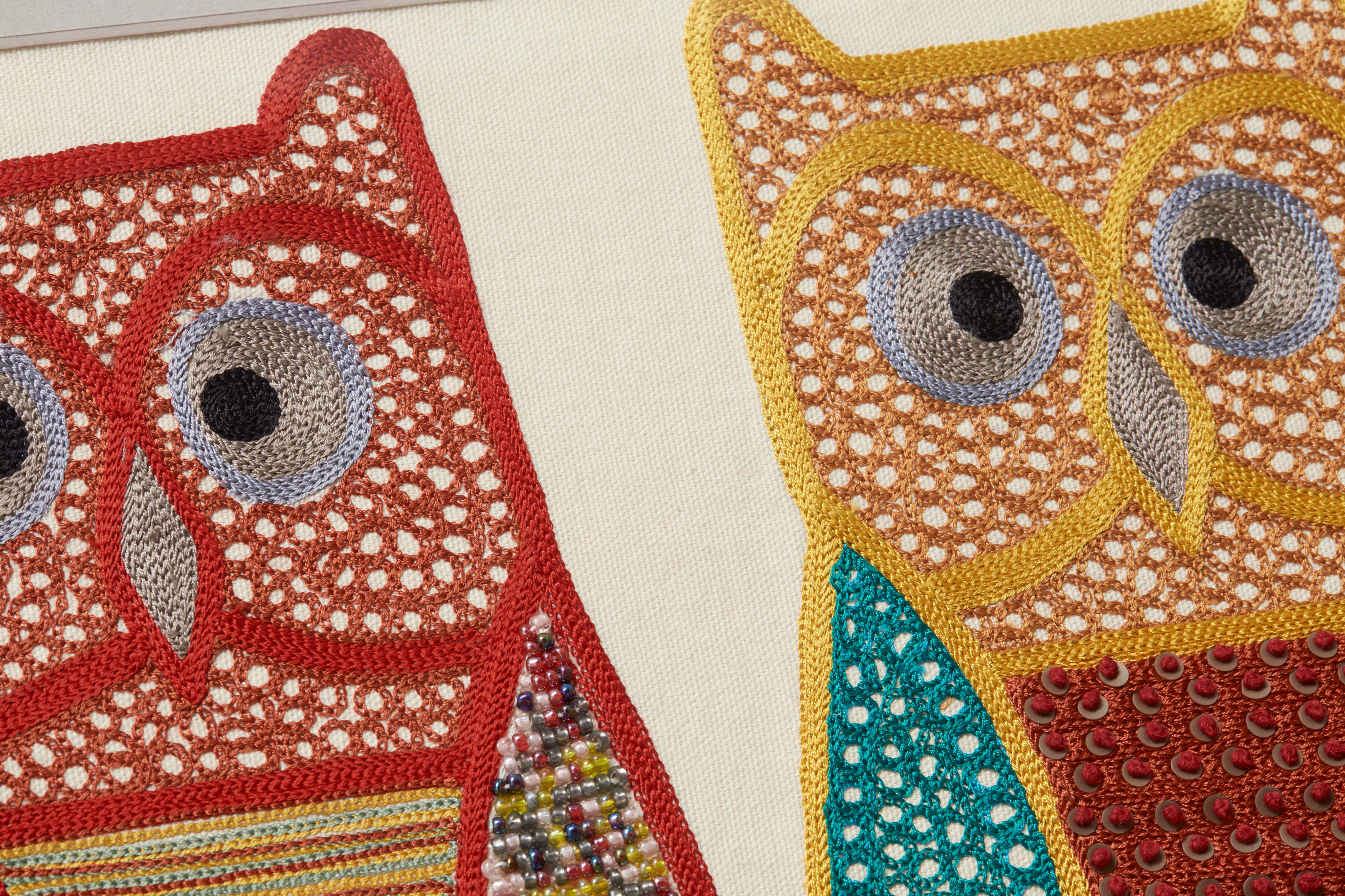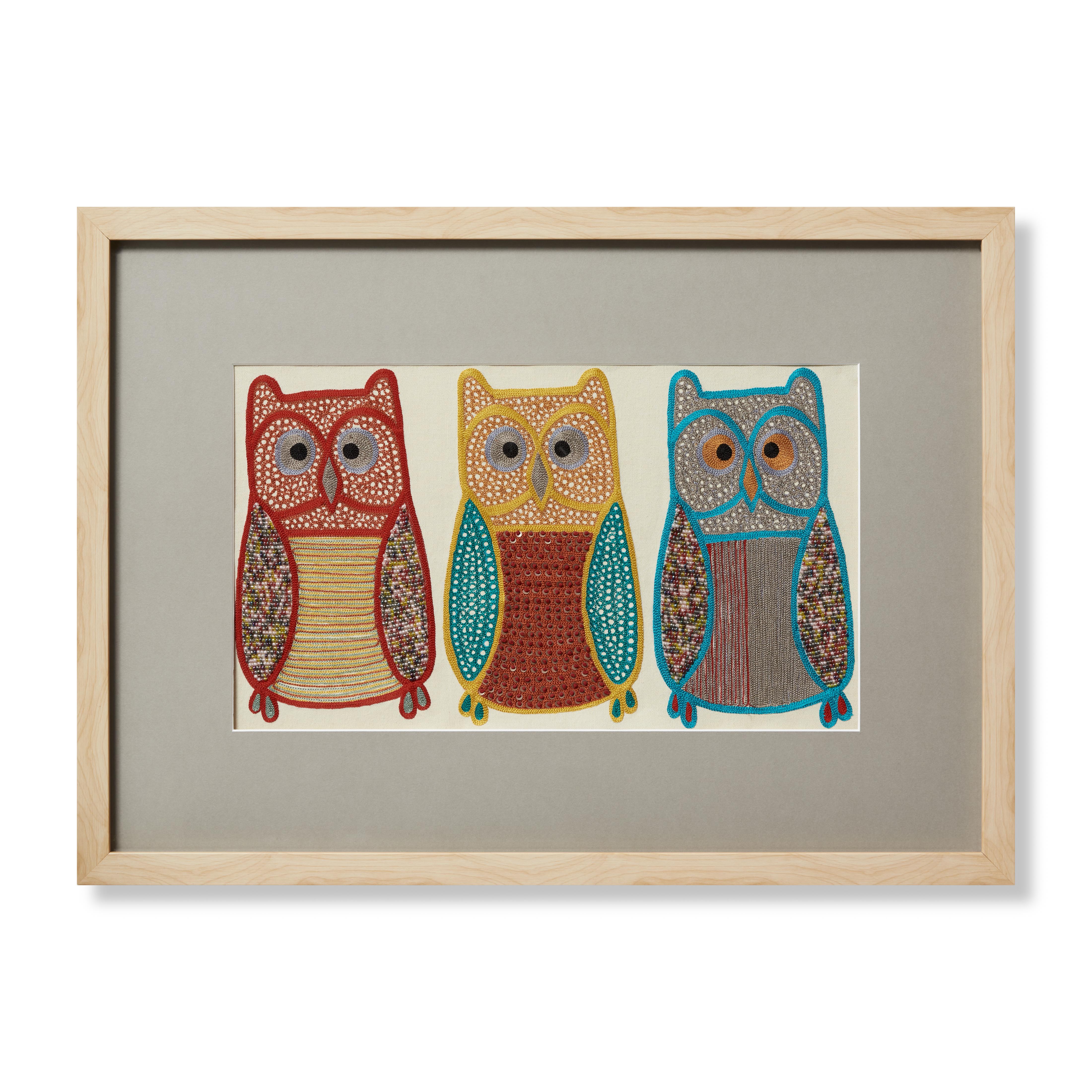 Our multicolored Know It Owls will add a touch of whimsey, patchwork pattern and cheerful color to your décor. Appliqued and embroidered in bright tones.