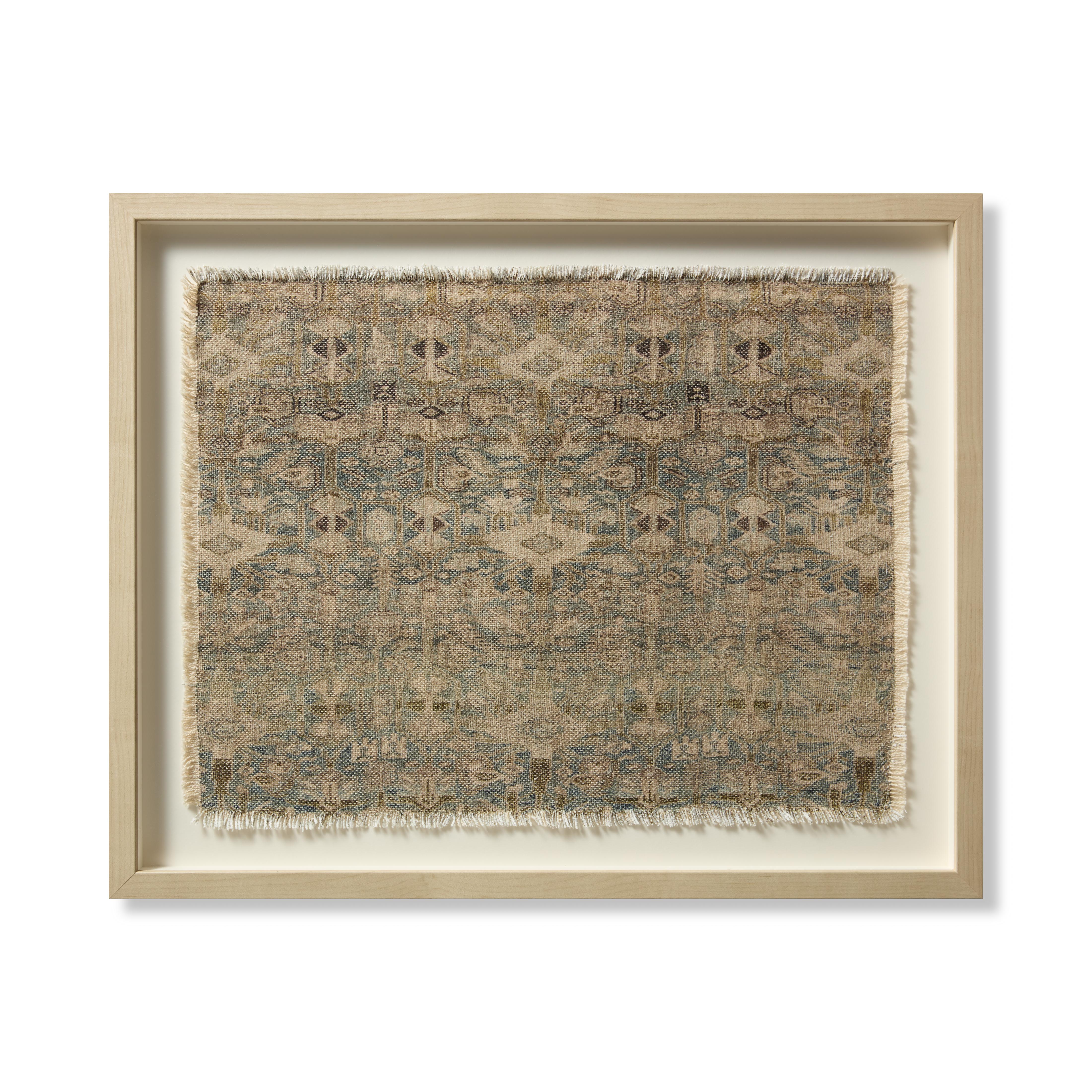 Timeless design and printed textiles are combined to create sophisticated framed wall art. The soft color palette and mix of distressed and traditional-inspired motifs bring a vintage sophistication to any décor space.