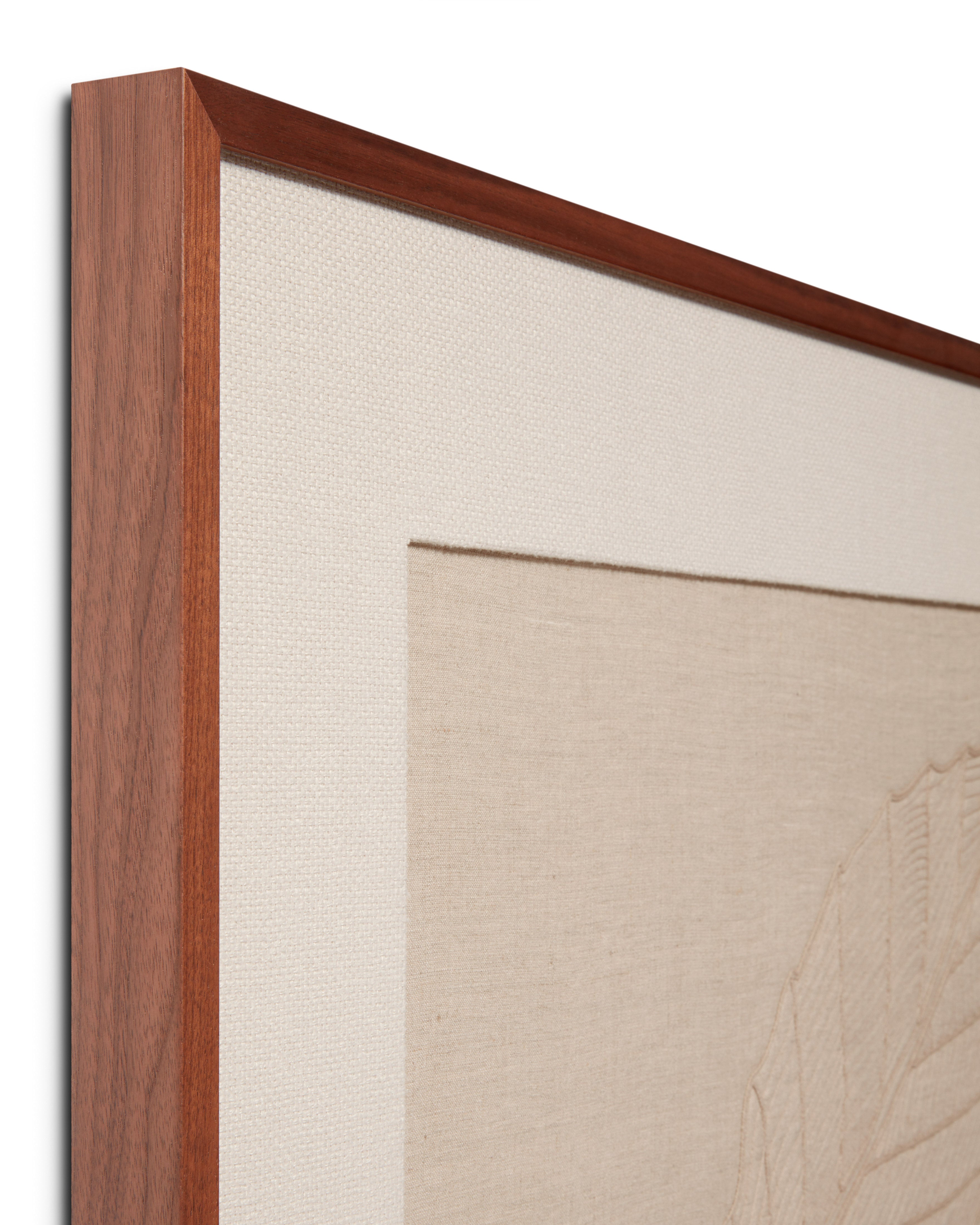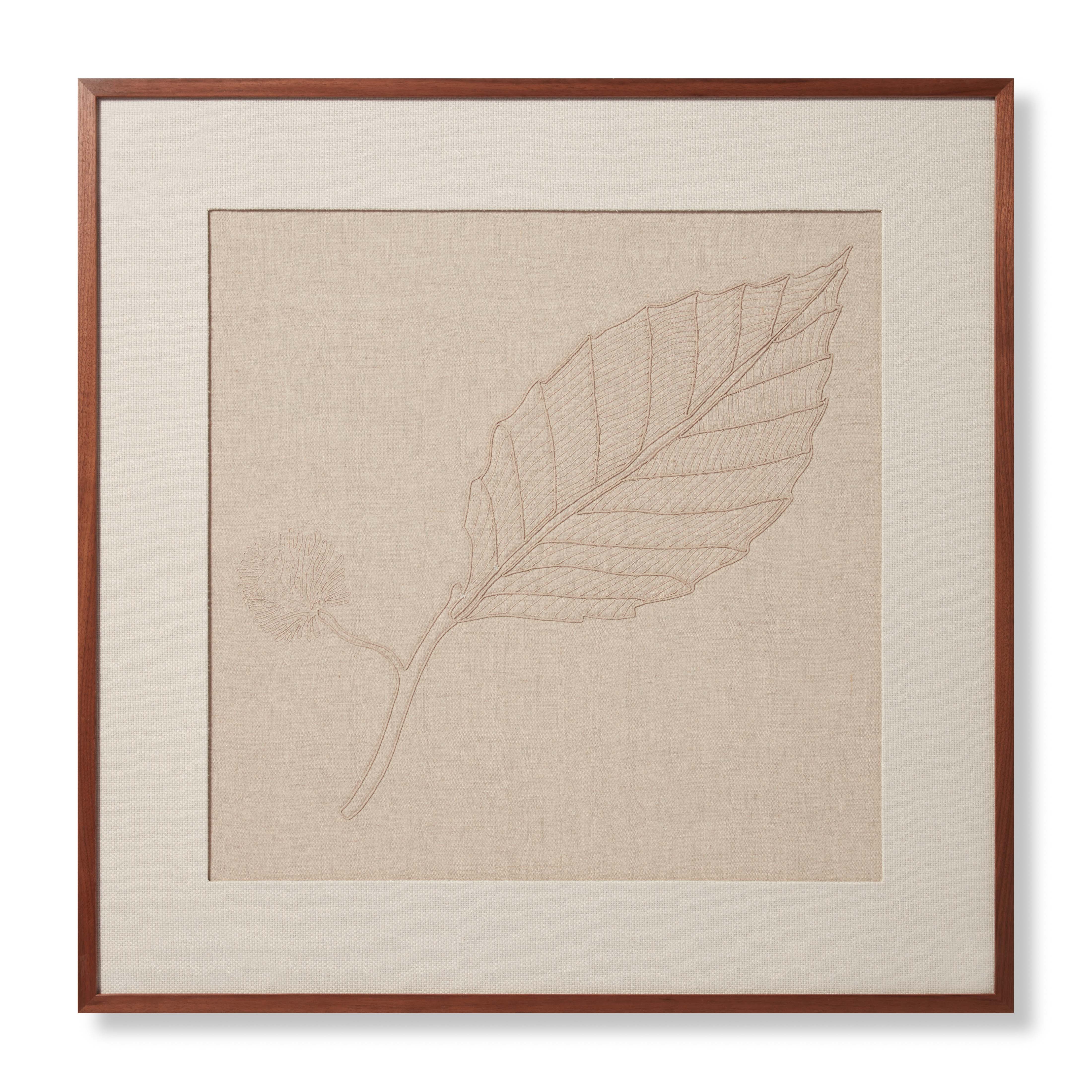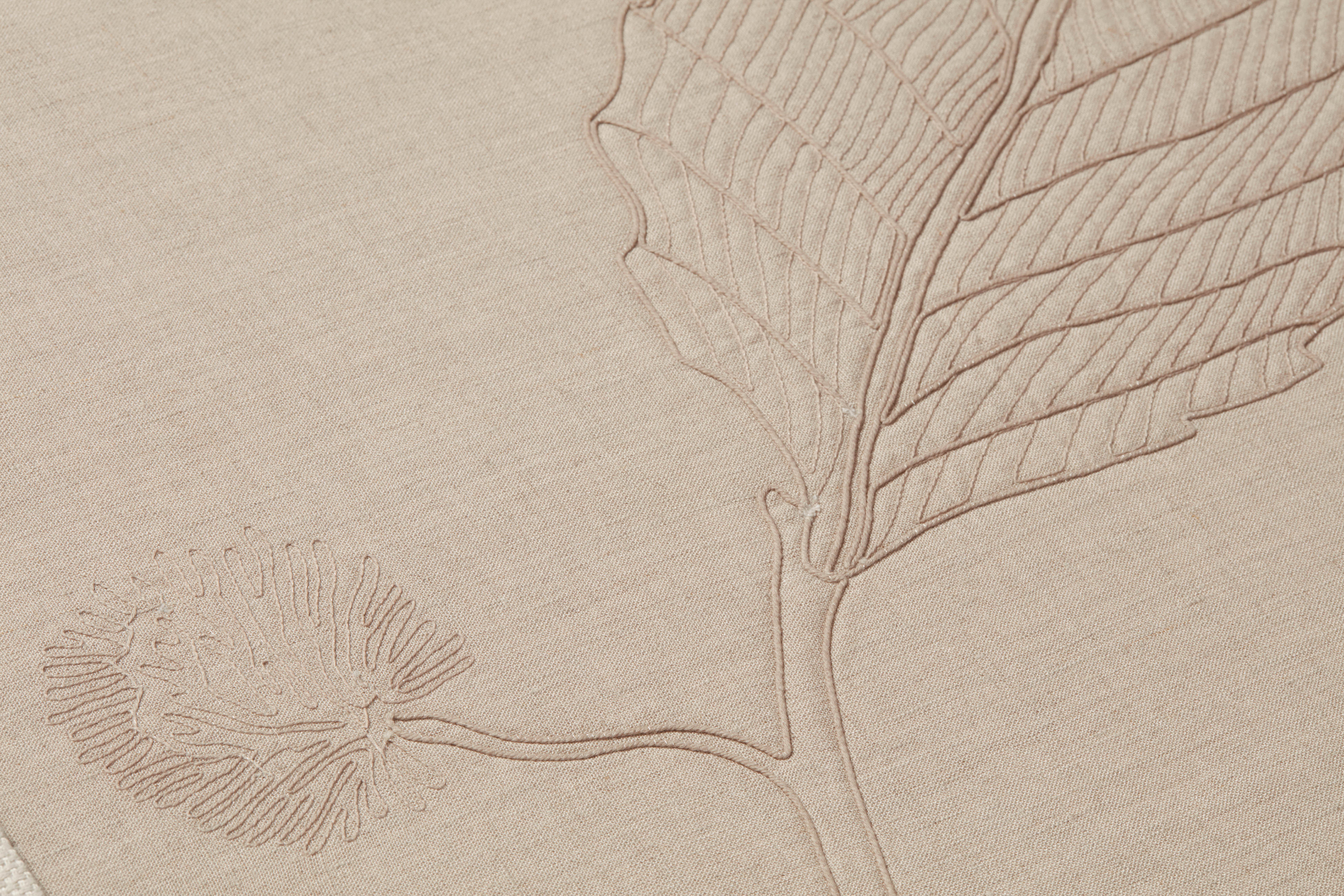 Created as a timeless textile art piece, Mountain Mint is a finely embroidered leaf study with all the charming detail of a classic botanical illustration. Made in India on an oatmeal base cloth, Mountain Mint celebrates the incomparable beauty found in nature.