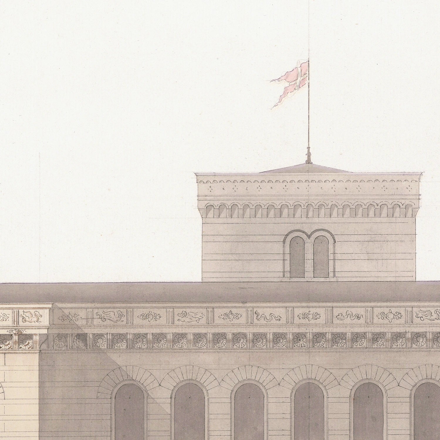 Impeccable detail and warm hues bring life to this architectural elevation of an Italian villa from the 19th century.