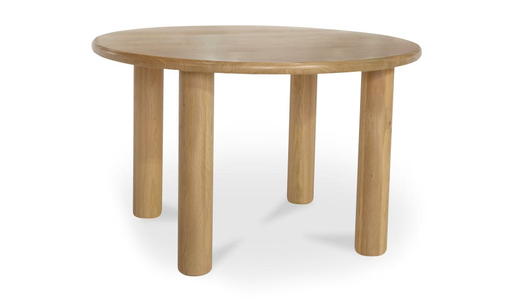 With its thick, rounded edge and sleek column legs, the Milo dining table adds a touch of warmth, comfort and sustainable design. Featuring a light oak finish, this table brings a sense of visual lightness and effortlessly complements various wood tones. Crafted from FSC-certified oak wood and veneer, the Milo showcases exquisite craftsmanship and ensures responsible sourcing from environmentally managed forests