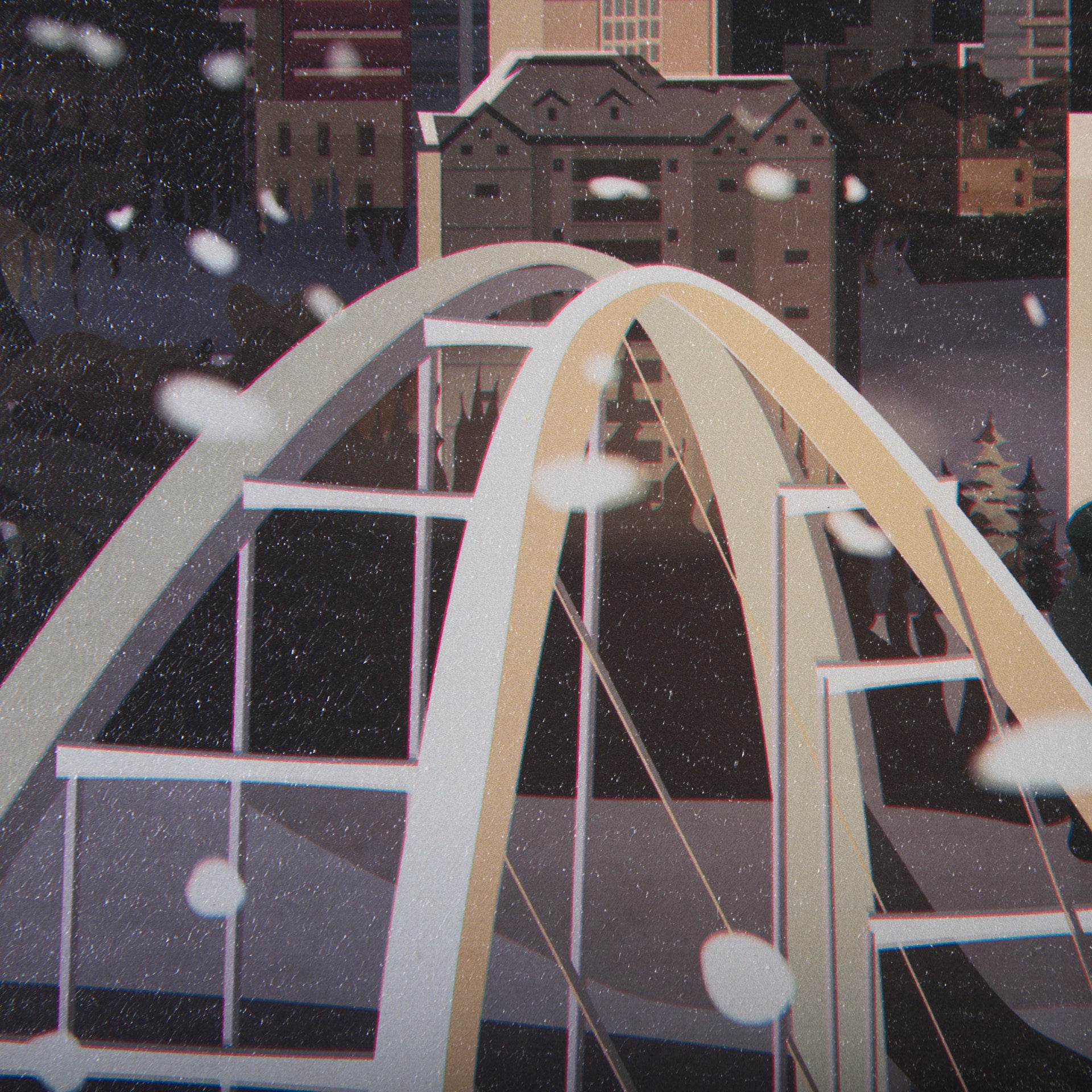 Embrace winter’s quiet charm with Mercana’s Edmonton Go Canada. This hand-embellished framed print captures the city’s skyline under gentle snowfall in soft grays and whites, blending modern architecture with serene beauty.