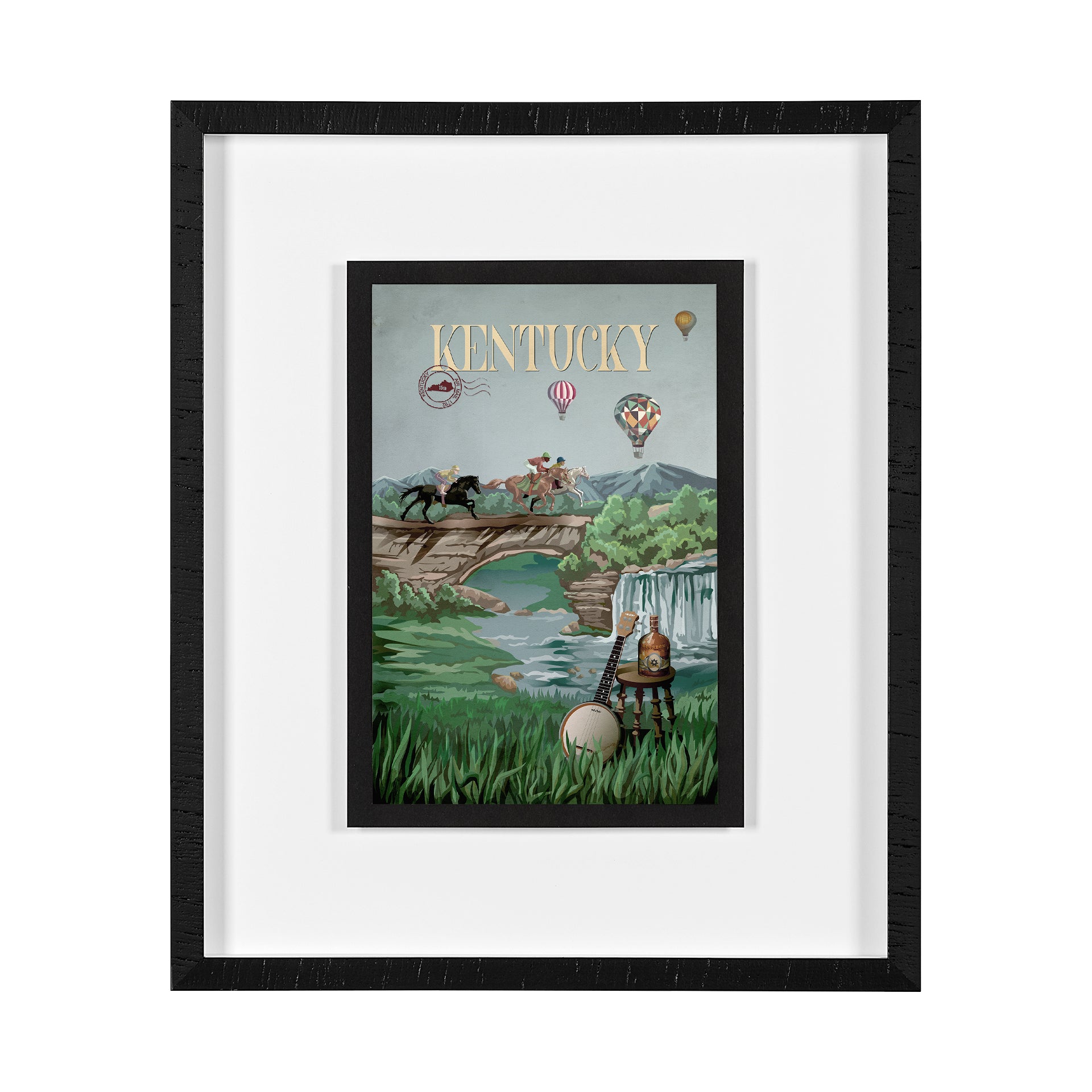 Capture the heart of Kentucky with Mercana’s Kentucky USA. Hand-embellished and beautifully detailed, this framed art celebrates horses, hot air balloons, and lush countryside charm.