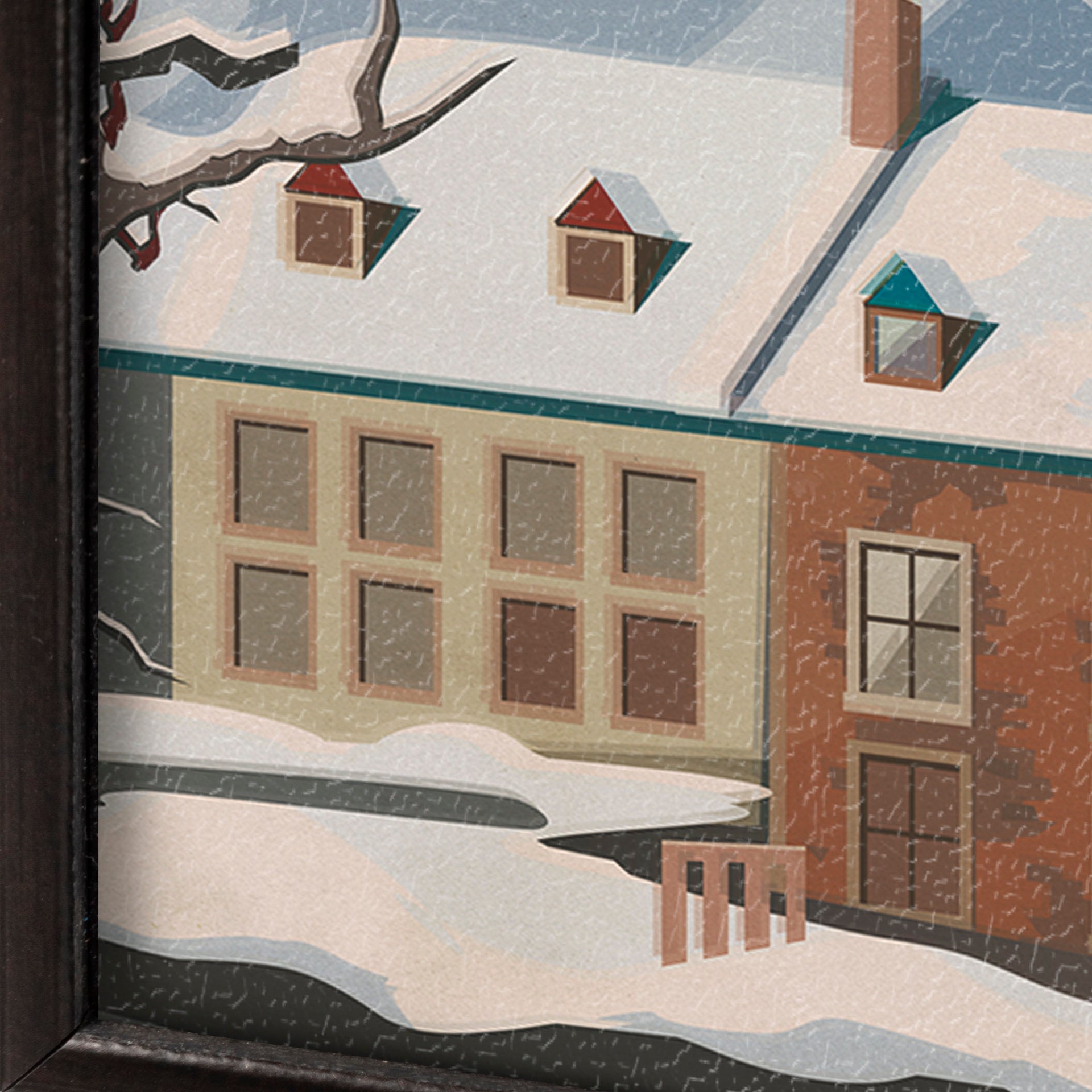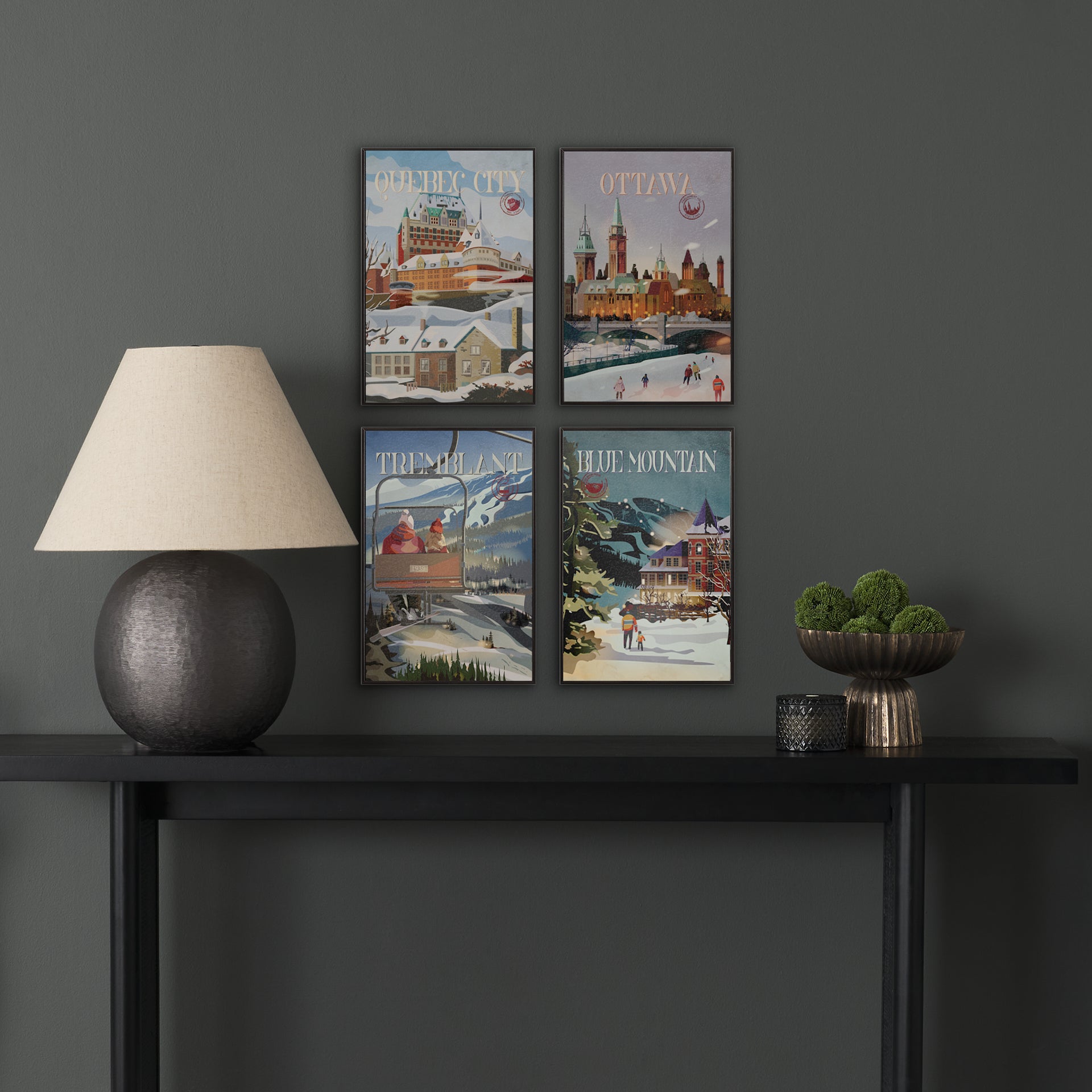Experience the charm of Old Quebec with Mercana’s Quebec City Canada. This hand-embellished framed print captures the city’s historic architecture in warm reds, soft blues, and snowy whites for a touch of timeless magic.