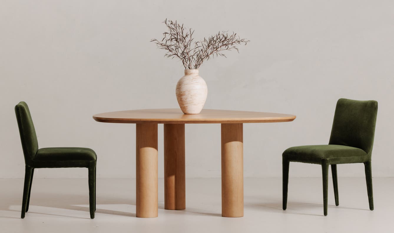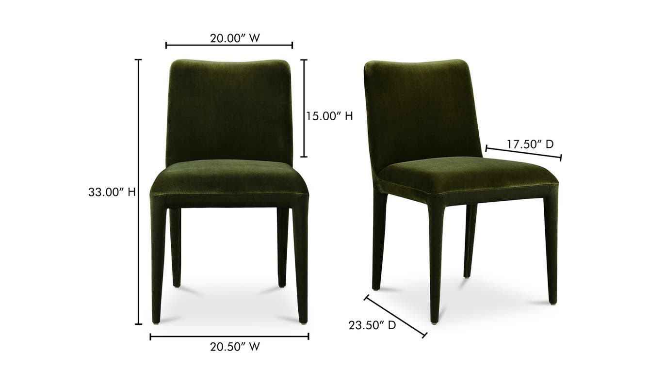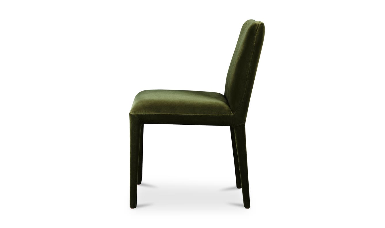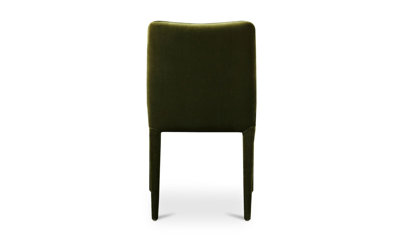 Meticulously crafted to marry elegance and comfort, the fully upholstered Calla dining chair's sturdy ash wood frame is complemented by a robust rubber wood base, offering unparalleled stability and support for long-lasting use—a timeless option to elevate the dining space in plush velvet green..