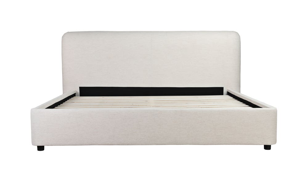 Catch Z's with the Samara Bed! Constructed from solid pine wood and upholstered with a soft linen blend, this bed will leave you feeling like a star. Filled with foam for a plush look, don't get mad at us if you never want to leave this bed.
