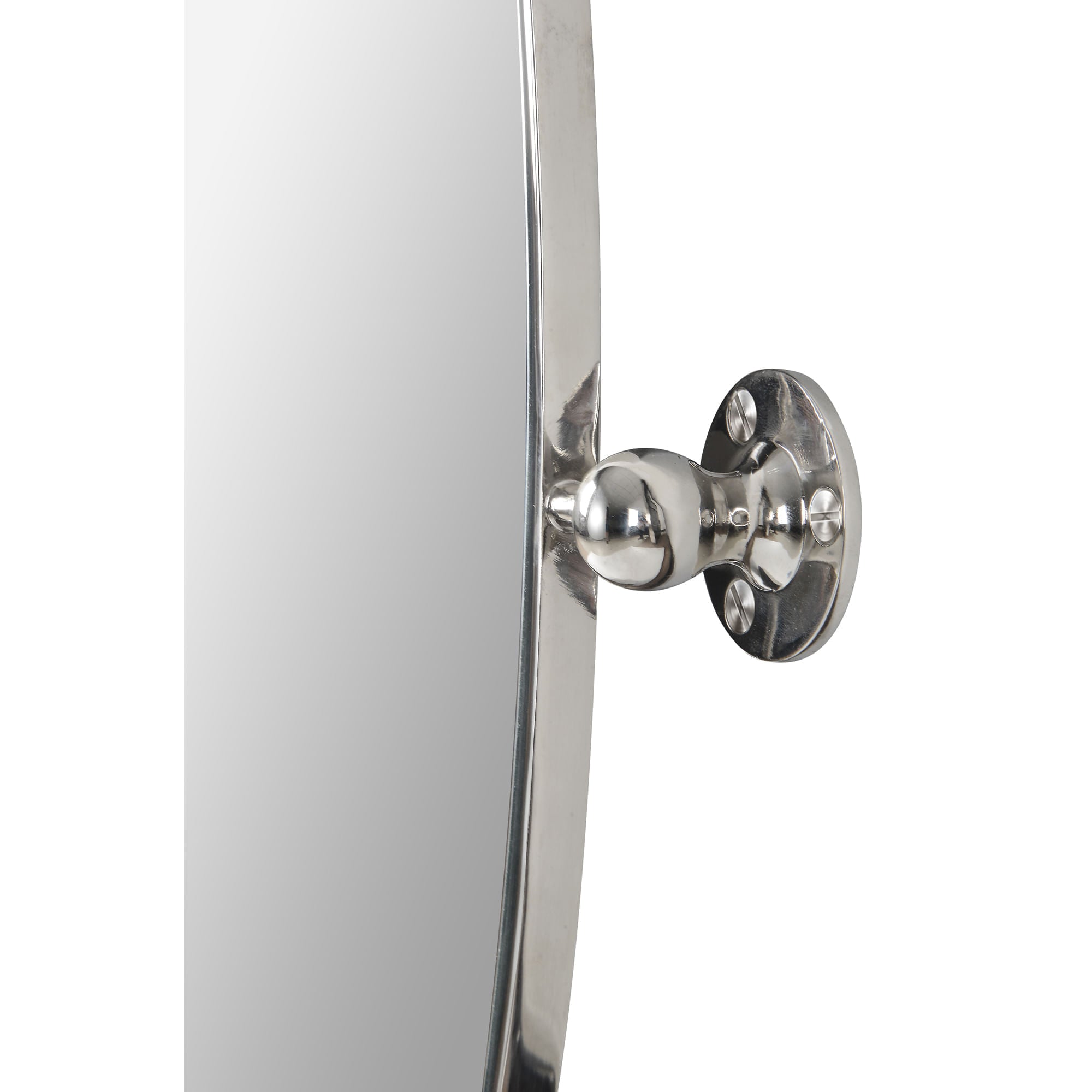 Simple elegance radiates from every angle of this vanity mirror. Featuring an iron frame with polished nickel plating and decorative brackets, it feels modern, while retaining a classic appeal. Hanging in the contemporary bedroom, it is set to make a lasting impression.