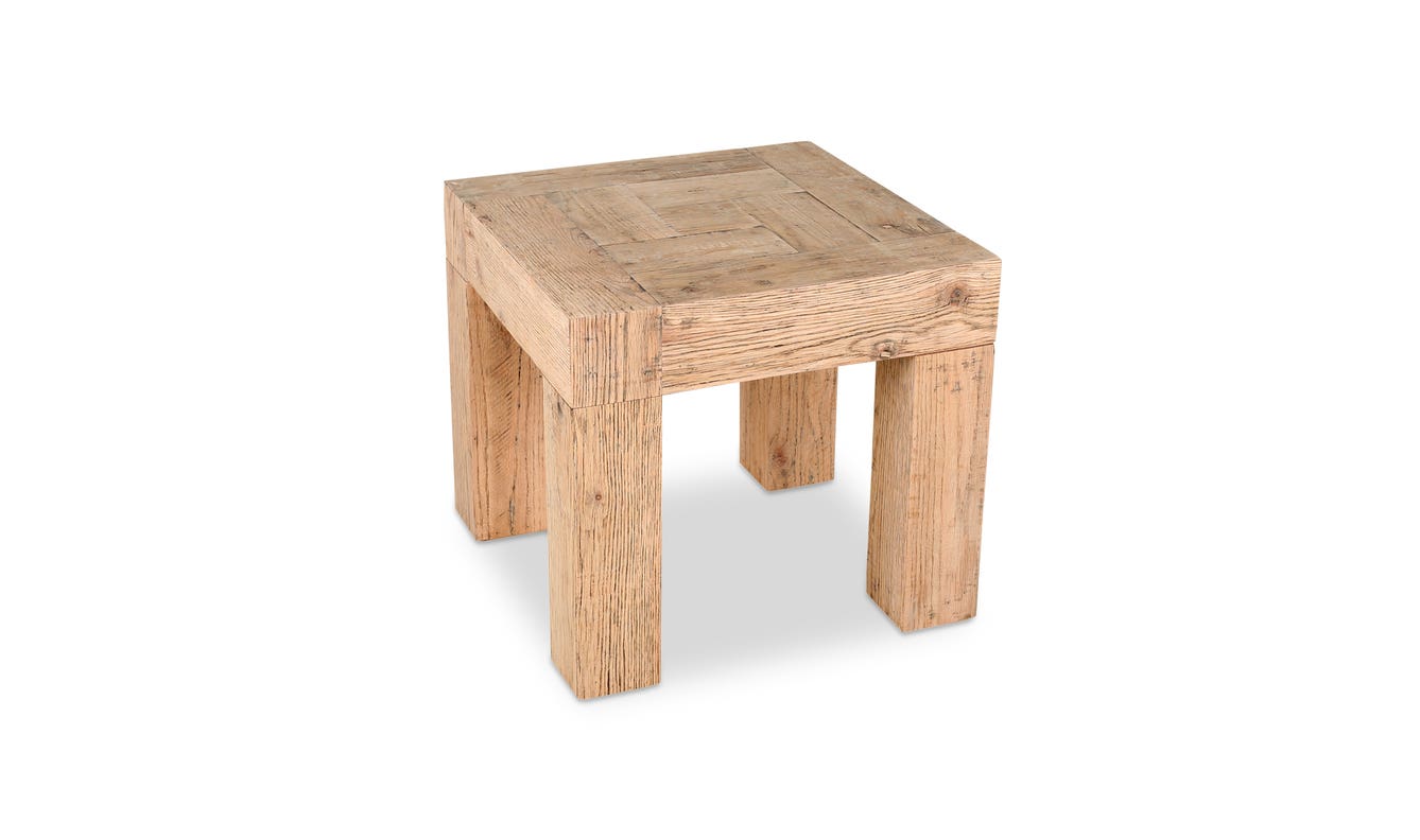 For all the organic energy, choose Evander. Formed from solid reclaimed oak, the Evander side table features wild grains and knots, producing a unique surface alongside its modern, blocked construction. Available as a coffee table and a side table for living room pairing.