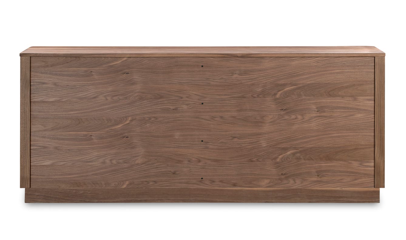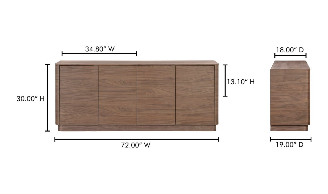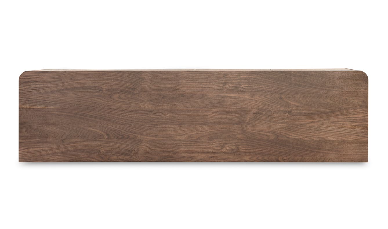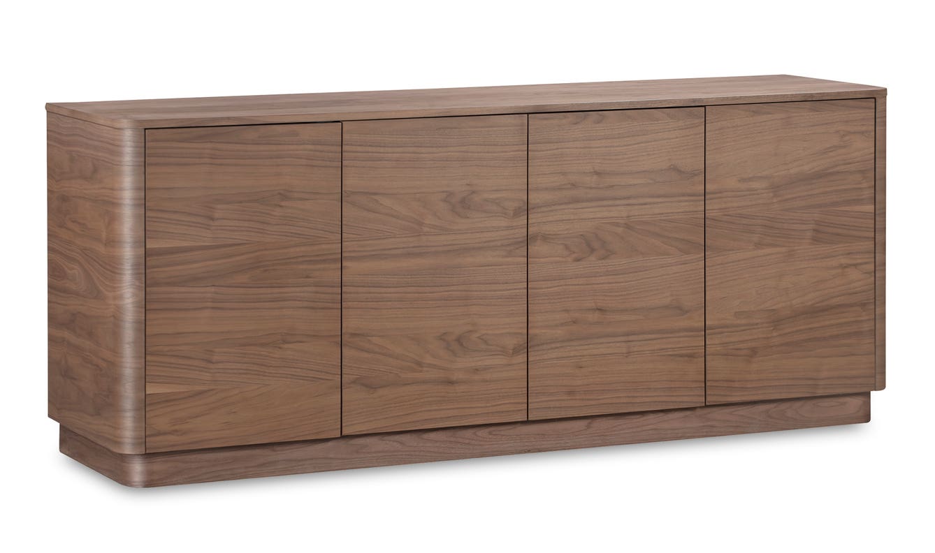 Natural allure meets minimalist design. The Round Off sideboard celebrates the captivating tones of natural wood grain, seamlessly integrated into a soothing design, embracing natural beauty and character. This sideboard boasts gently rounded corners and four doors that open to generous storage space while embracing walnut's natural beauty and character.