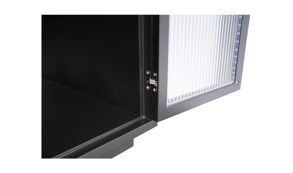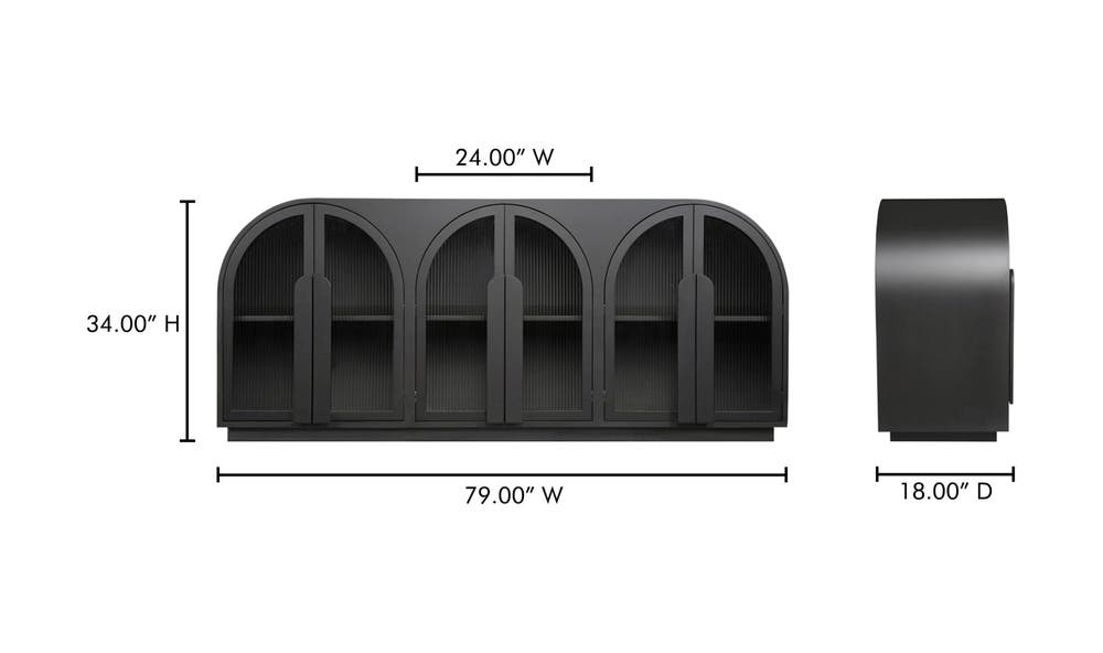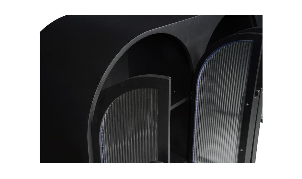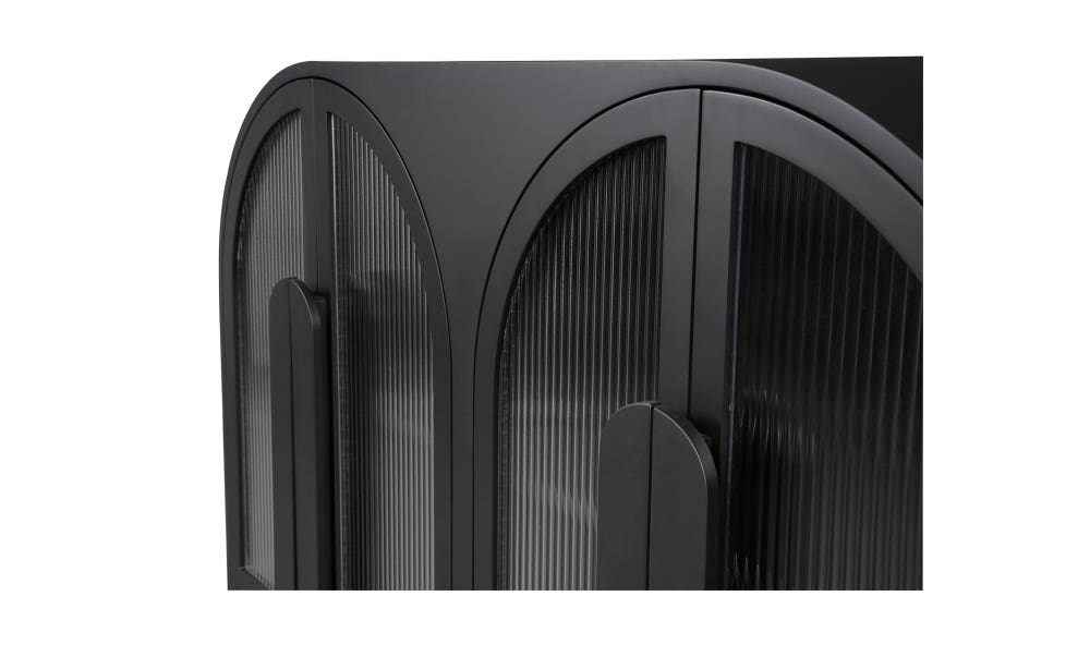 Reminiscent of antique arched doors in Paris, the Salone sideboard's seductive concept of partial concealment allows the furniture itself to take center stage rather than what lies hidden behind the Art Deco-inspired reeded glass doors. The oversized Beech door handles offer a graceful touch of contrast against the reeded glass doors. This juxtaposition of round arches and the straight, repetitive lines adorning the glass lends an intriguing dynamism to the overall composition.
