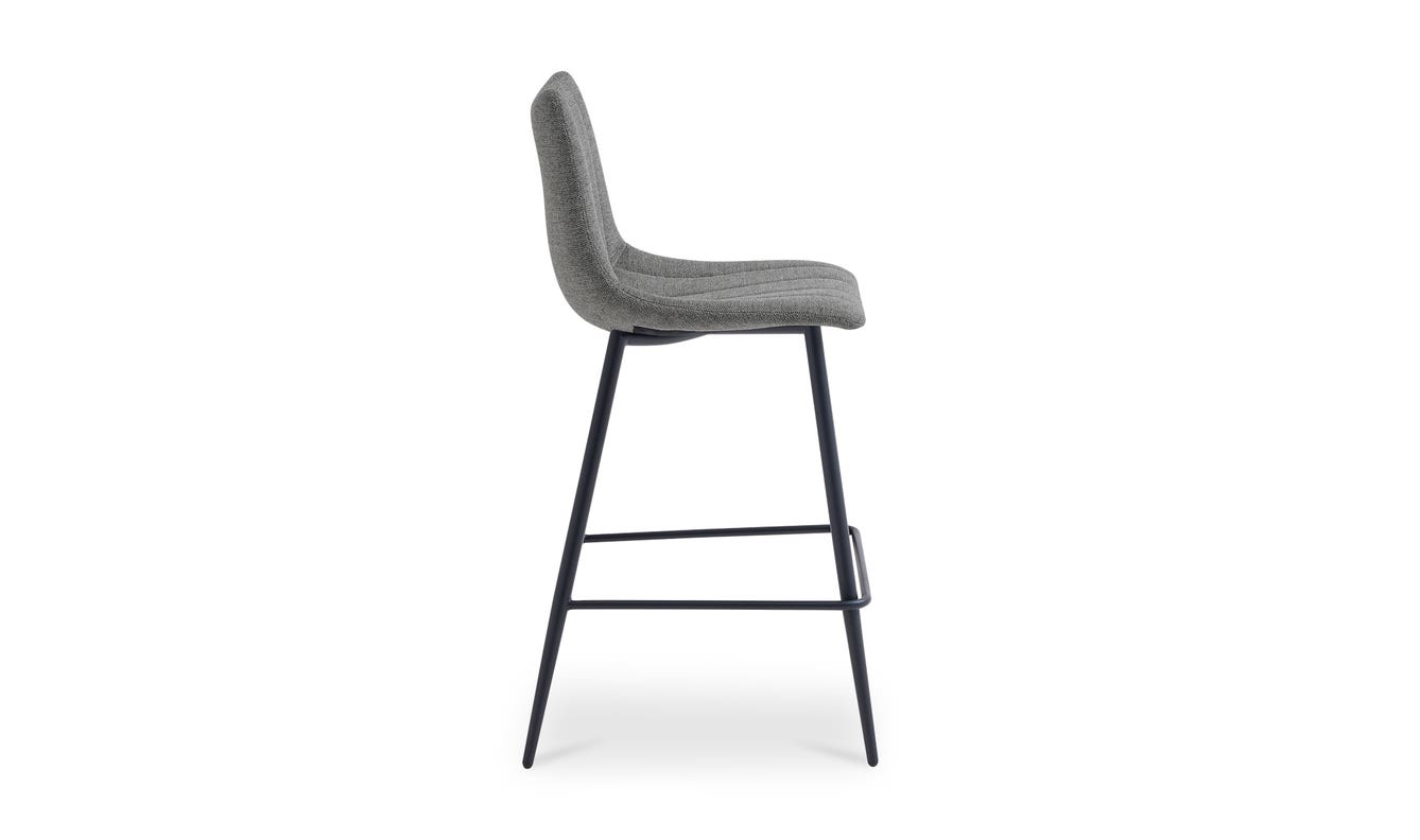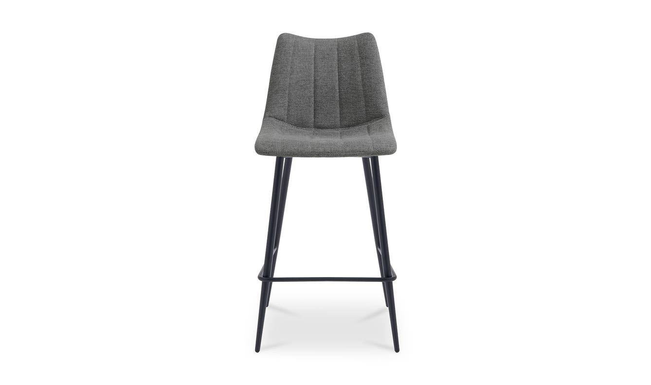 Contemporary modern counter stools get a new take with this sleek aesthetic. The Alibi counter stool features striking vertical line stitches that add subtle detail to its monochromatic design. An easy-to-clean performance fabric seat is shaped to fit for comfort so guests can relax at the island or bar counter.