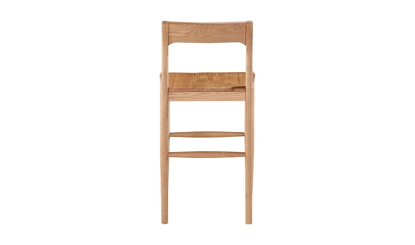 Available in blackened oak, natural oak and walnut, the Owing counter stool is a sophisticated spin on the traditional. Its mid-height, curved, open-back design combines comfort with casual appeal while its solid wood frame creates a timeless, mid-century silhouette—a seat that is as distinguished as it is inviting.