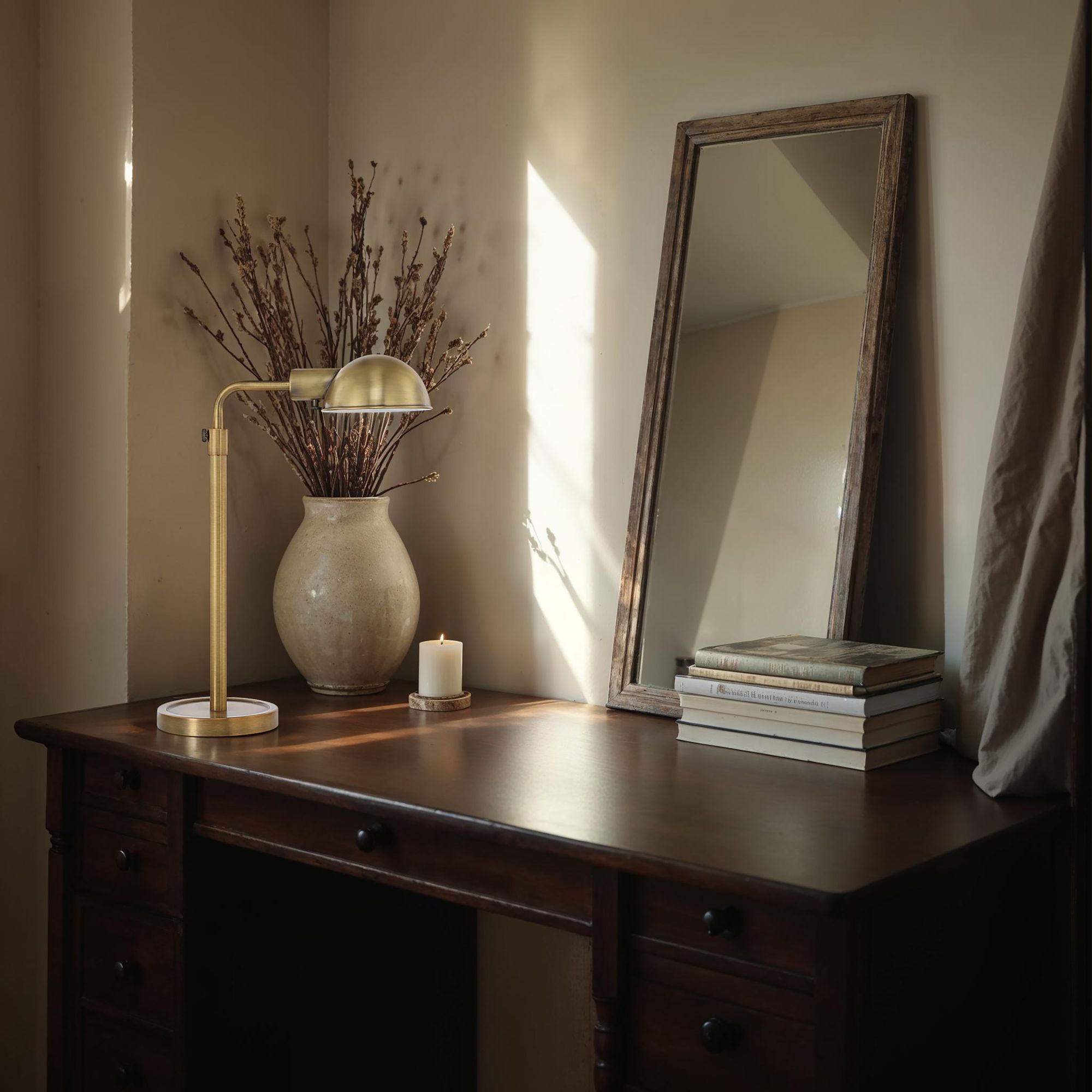 Place this transitional table lamp by the side of a sofa, chair or bed if timeless appeal is the effect you’re after. Its dark antique brushed brass-plated finish delivers an old-world patina that brings warmth and charm to any space, while height-adjustability and dimmability allow for customizable lighting at the flick of a switch.