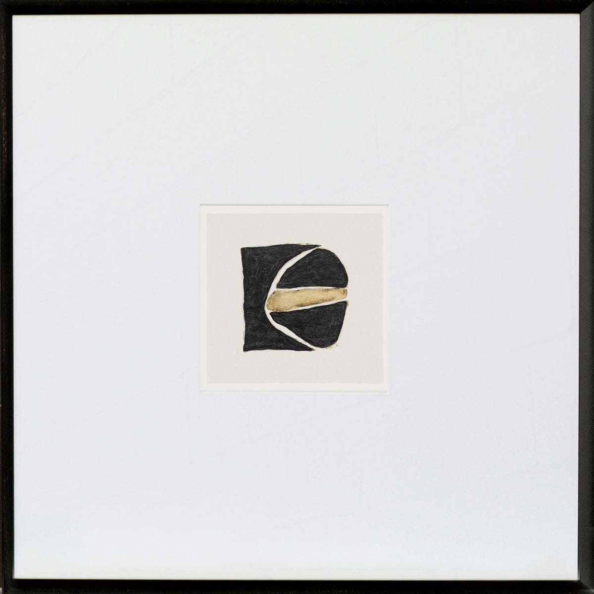 El impacto de estas preciosas imágenes en blanco y negro, de inspiración de mediados de siglo, se ve realzado por un dorado finamente texturizado. Se presentan en un marco negro mate minimalista de gran tamaño.