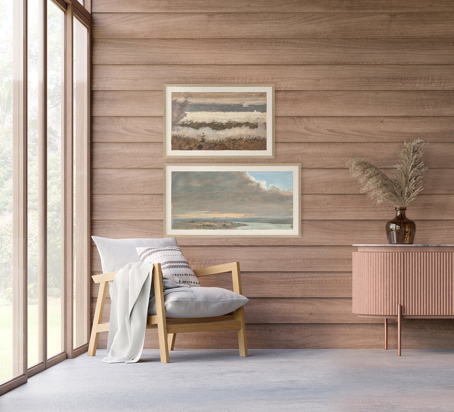 The majestic wilderness of North America was revered and romanticized by this group of 19th century landscape painters. The paintings in this collection from that time use a tranquil palette that can evoke a sweet pastoral feeling while still emphasizing the awesome power of these vistas.