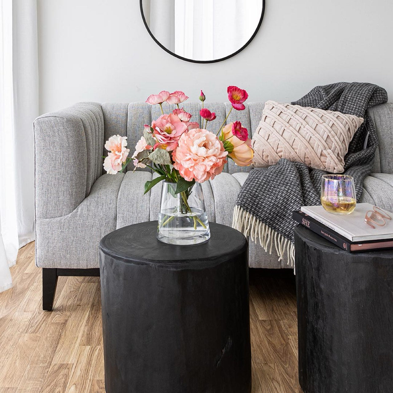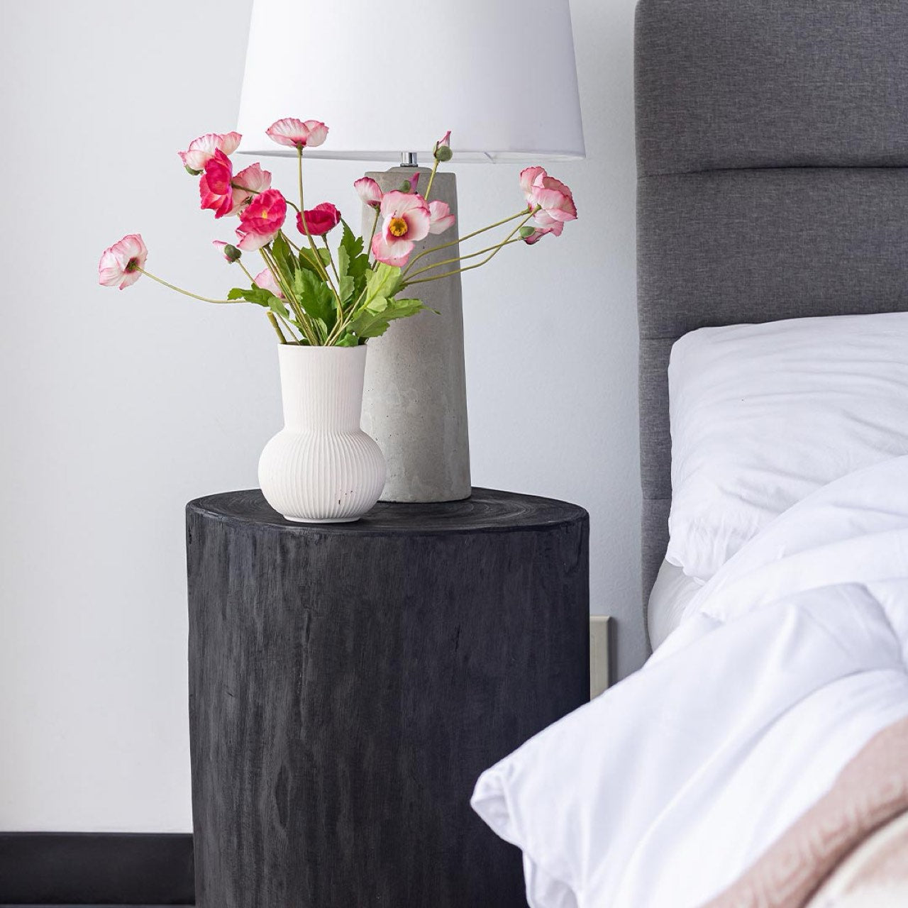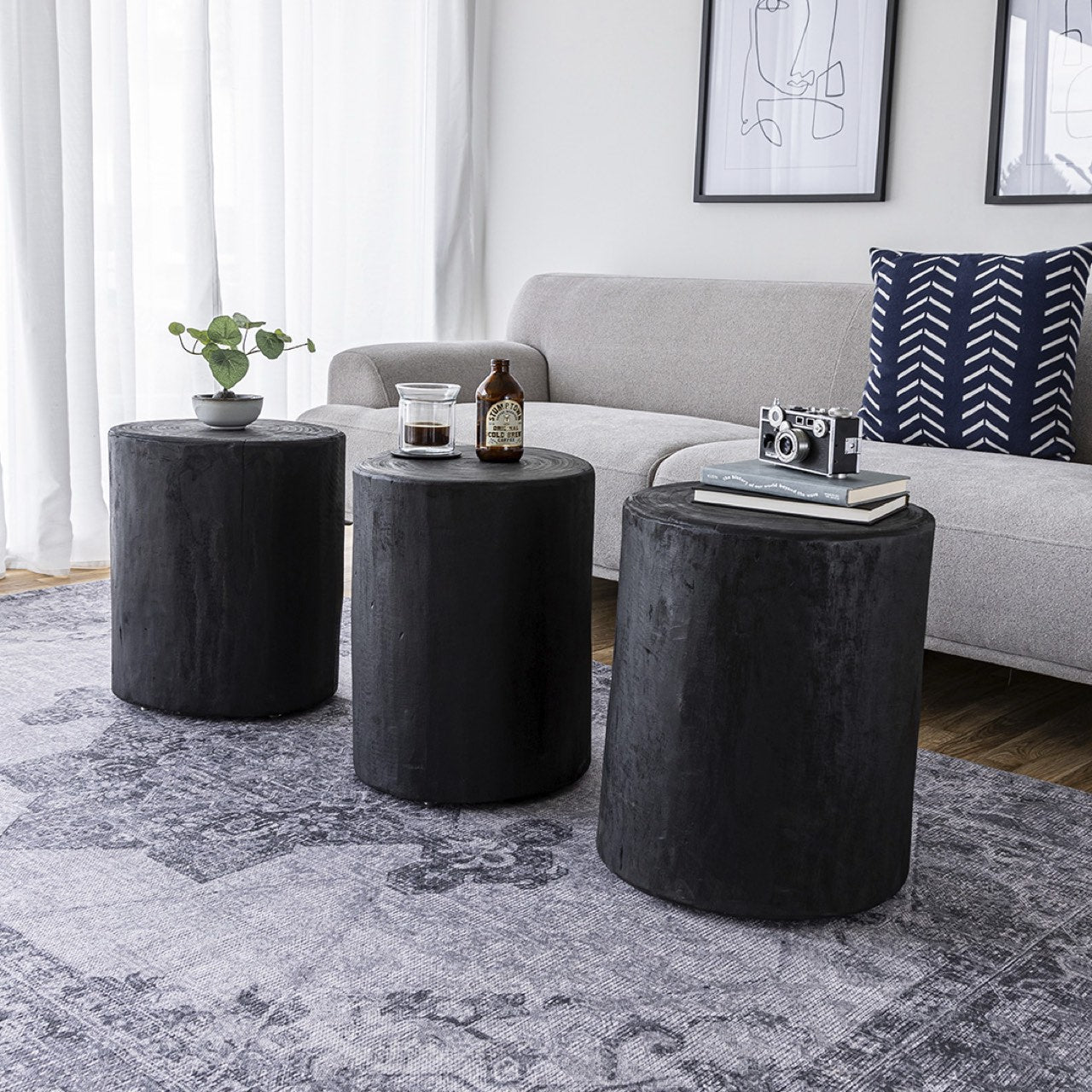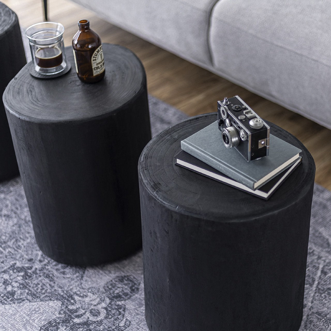Everyone is going to want to know where you got these gorgeous black stumps. Handmade from sustainable solid paulownia wood and finished in a dramatic matte satin black stain, these versatile stumps coordinate with any décor. Use them as side tables, accent stools, or bedside companions. Each piece is unique, adding natural beauty and character to your home.